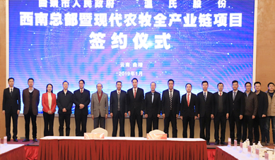 1月16日1月16日,溫氏股份西南總部暨現代農牧全產業鏈項目簽約儀式在云南省曲靖市舉行。曲靖市人民政府與溫氏股份簽訂了溫氏股份西南總部暨現代農牧全產業鏈項目合作框架協議,沾益區人民政府與溫氏股份簽訂了溫氏股份西南總部、溫氏安居工程及溫氏食品產業園項目合作協議。